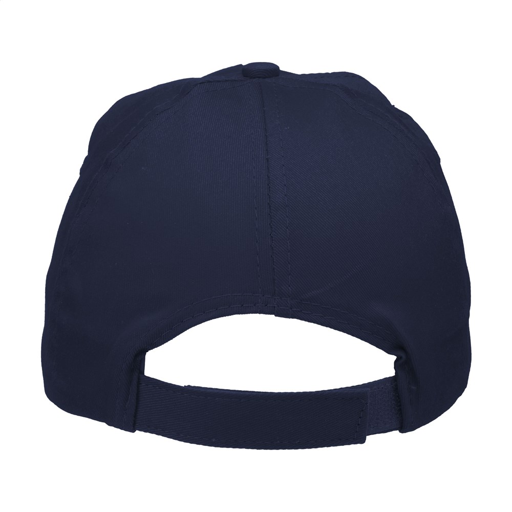 Baseballcap van 100% katoen met voorgevormde klep en klittenbandsluiting.