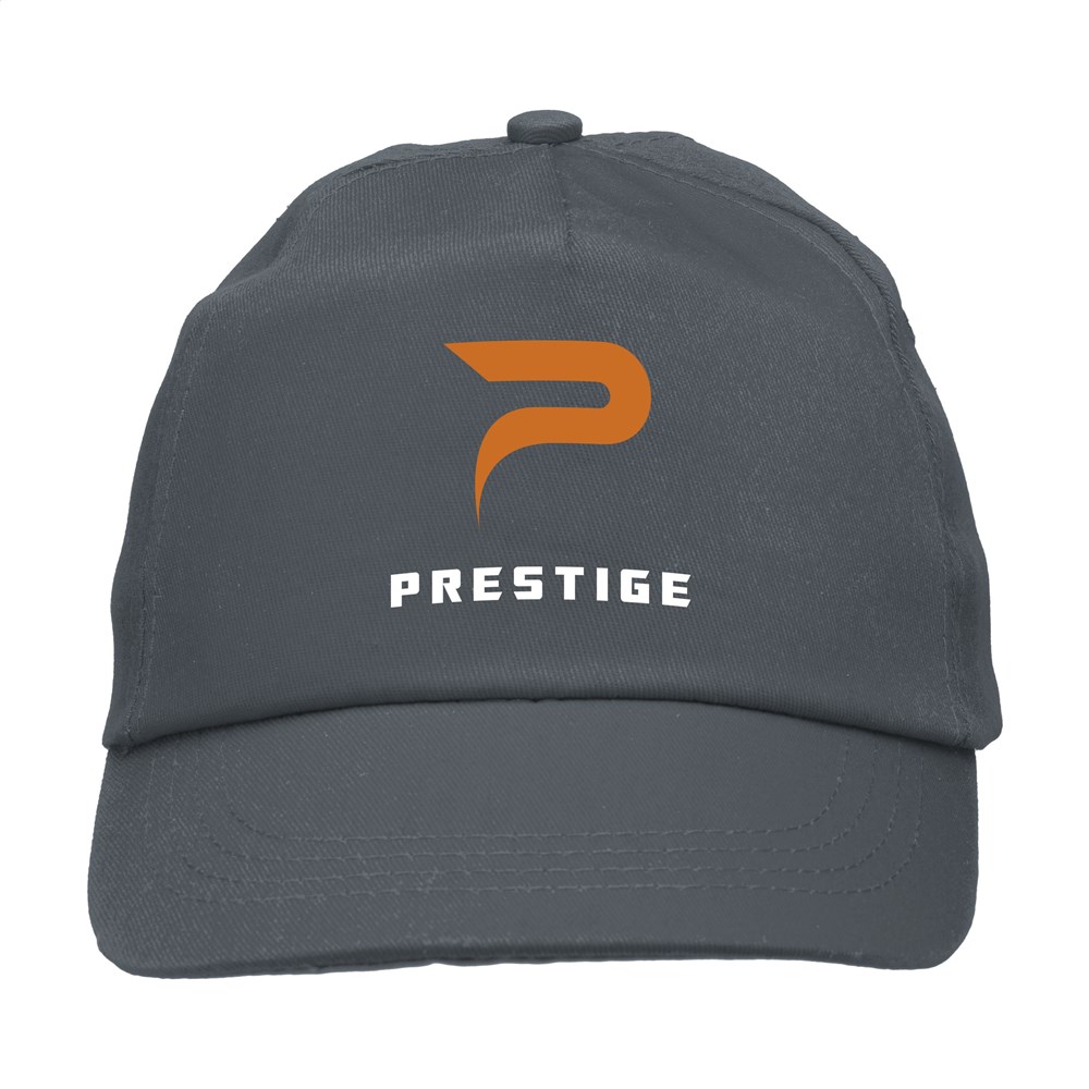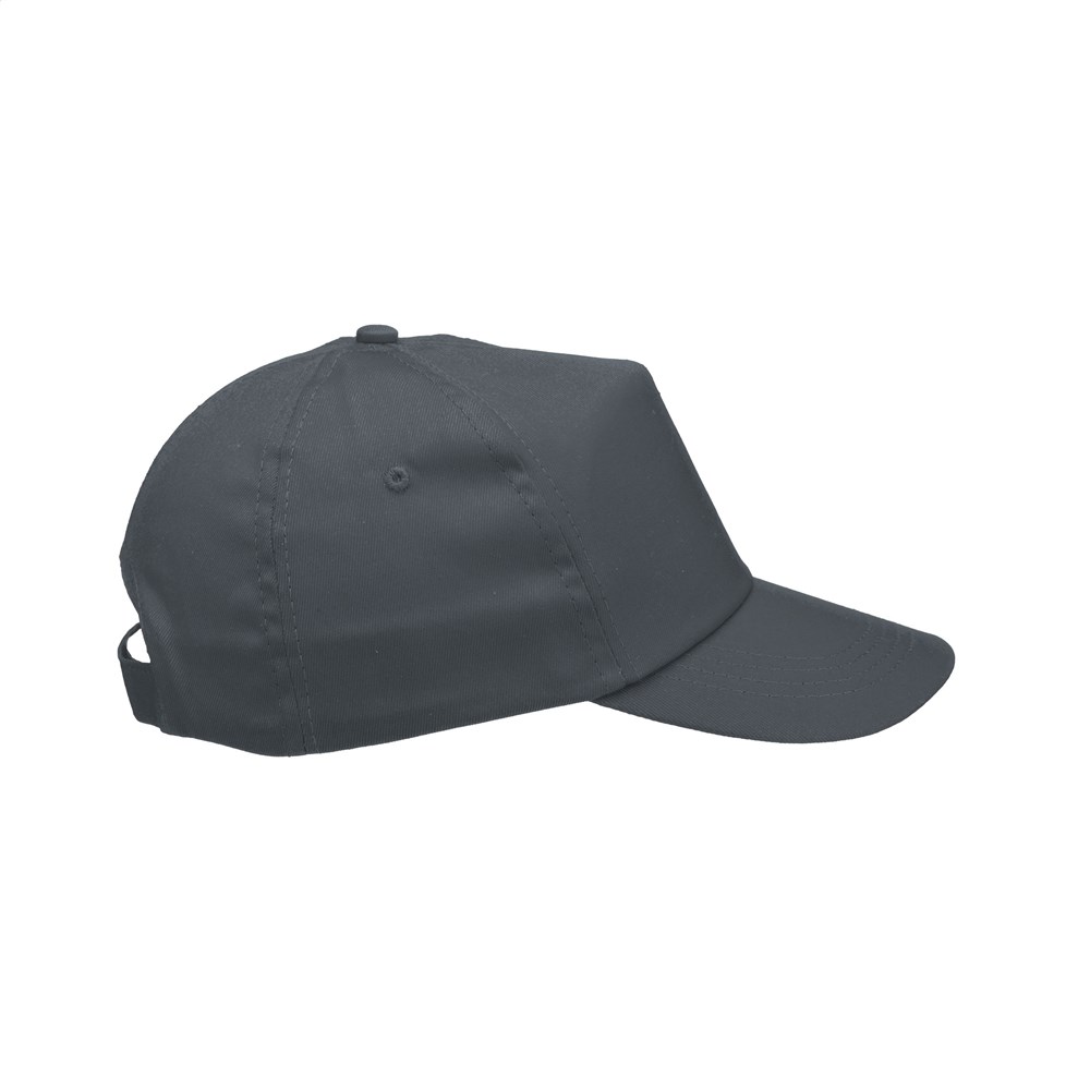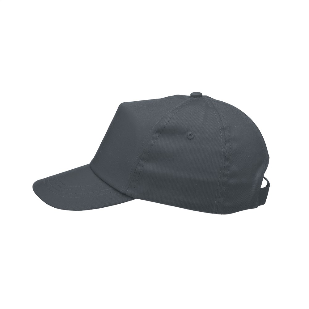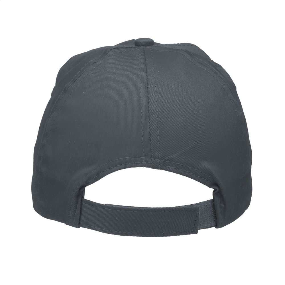 Baseballcap van 100% katoen met voorgevormde klep en klittenbandsluiting.