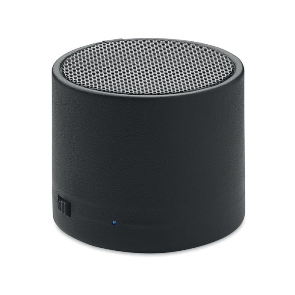 5.0 draadloze luidspreker met behuizing van ABS en PU die voor 58% gerecycled is (40% gerecycled polyester en 18% gerecycled PU) en LED-lichtindicator. Outputgegevens: 3W, 3 Ohm en 5V. Speeltijd +/- 3 uur.