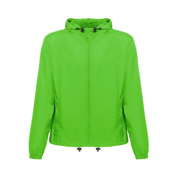 Waterdicht windjack (Unisex) in 100% gerecycled nylon taffeta stof (65 g/m²). Opening aan de voorkant met YKK® rits - een merk dat gebruik maakt van moderne apparatuur en hoge kwaliteitscontrole. De capuchon is gevoerd met mesh en heeft trekkoorden om aan te trekken. Met oogjes voor gemakkelijke ventilatie, elastische sluiting met stoppers onderaan en zijzakken met rits. Maten: XS, S, M, L, XL, XXL