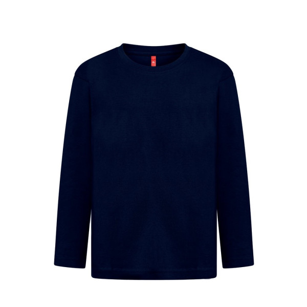 T-shirt met lange mouwen (150 g/m²), met enzymatische behandeling, voor kinderen in jerseystof (100% katoen met duurzame landbouwpraktijken). 1x1 ribkraag met verstevigingsband van jersey. T-shirt met rechte snit en dubbele stiksels aan de mouwen en onderkant van het artikel. Maten: 2, 4, 6, 8, 10, 12