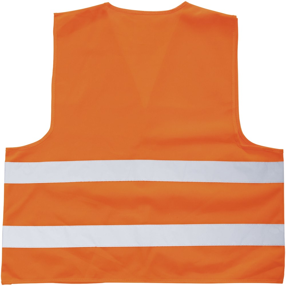 Goed zichtbaar waarschuwingsvest klasse 2 met klittenbandsluiting, geschikt voor personen met een lengte tussen 165 en 180 cm. Wordt geleverd in een bijpassende etui van hetzelfde materiaal met een afmeting van 21 x 17 cm. Groot decoratieoppervlak op de voor- en achterkant van het vest, evenals op de etui. Zichtbaarheidskleding voor professioneel gebruik. Fluorescerende achtergrond en reflecterende tape. Specificatie: EN ISO 20471:2013+A1:2016. Deze kledingstukken zijn voorzien van een CE-markering als bewijs van conformiteit met EU-verordening 2016/425/EU inzake persoonlijke beschermingsmiddelen, categorie II.