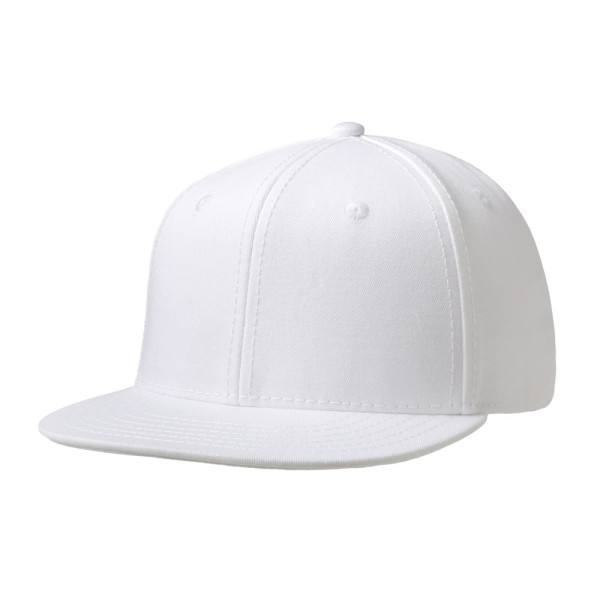 6 panel kids cap met frontvoering. Flat visor. Kunststof druksluiting. Uitgevoerd in cotton twill
