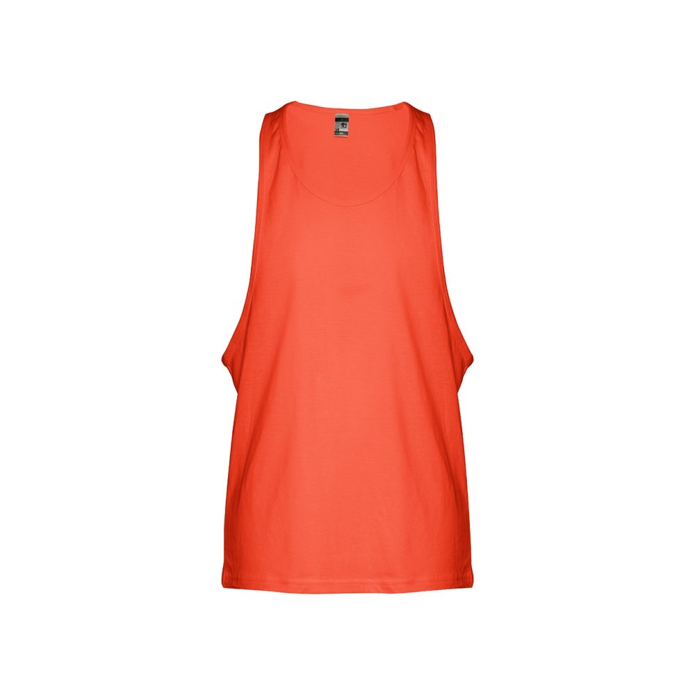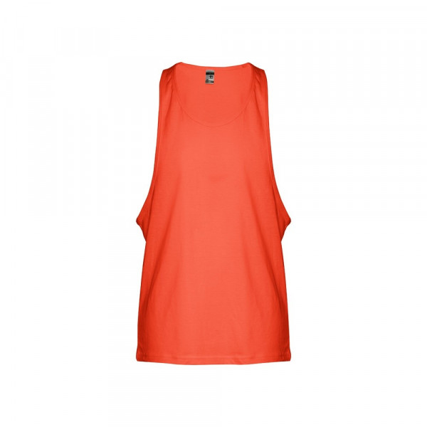 Męska koszulka na ramiączkach. 100% bawełna zgrzebna typu jersey (140 g/m²). Głębokie wycięcia pod pachami, okrągły kołnierz, z lamówką pod pachami i przy dekolcie. Zszywana po bokach, z podwójnym szwem na dole. Rozmiary: XS, S, M, L, XL, XXL