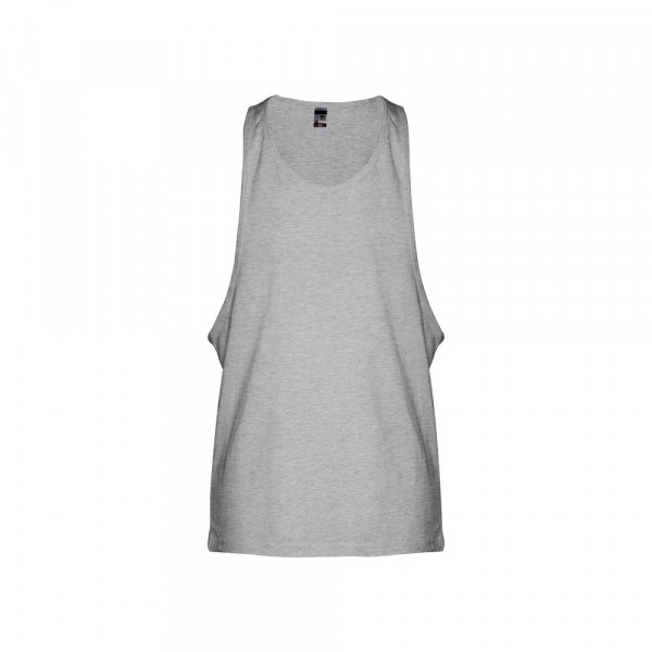 Męska koszulka na ramiączkach. 100% bawełna zgrzebna typu jersey (140 g/m²). Głębokie wycięcia pod pachami, okrągły kołnierz, z lamówką pod pachami i przy dekolcie. Zszywana po bokach, z podwójnym szwem na dole. Rozmiary: XS, S, M, L, XL, XXL