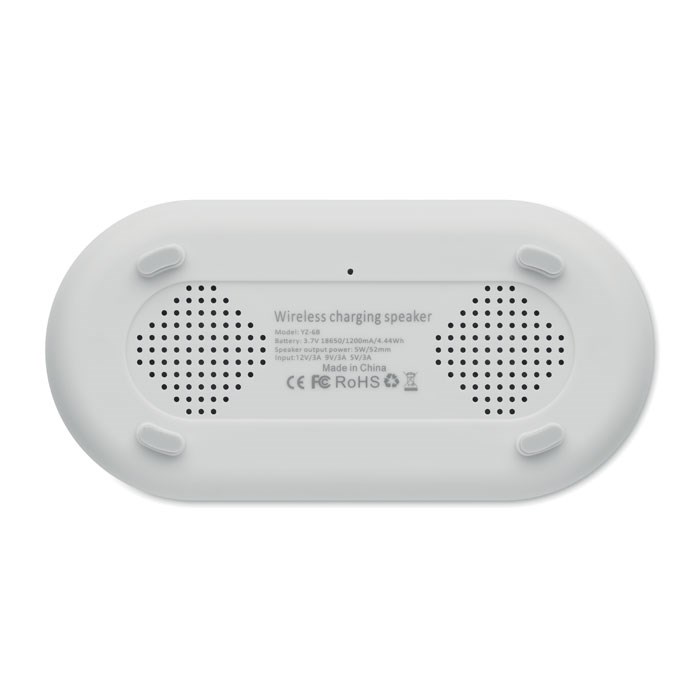 4 in 1 15W draadloze en oplaadbare 5W luidspreker in ABS met Weerstation en Sfeerverlichting. Wekker. Weergave van tijd en temperatuur. Ingebouwde Li-Iin batterij: 1200 mAh. Speeltijd ca. 7 uur