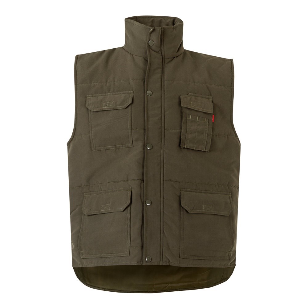 Gewatteerd vest met meerdere zakken (220g/m²) van polyester (100%). Met ritssluiting, verborgen door knoopsluiting. Elastische tailleband aan de zijkant en windvanger in het armsgat. Met zeven zakken (1 borstzak, 2 onderzakken, 2 zijzakken en 1 balgzak op de borst). Maat: S, M, L, XL, 2XL, 3XL