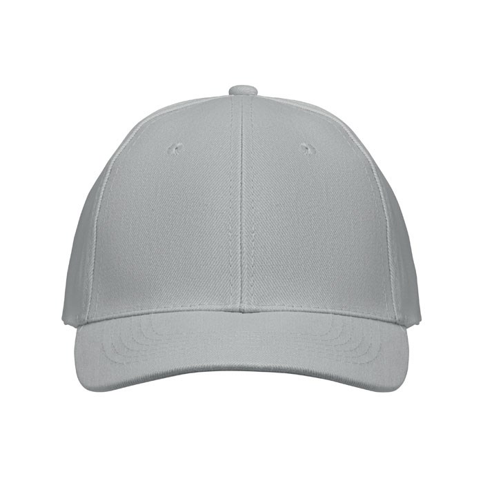 Baseballpet met 6 panelen van geborsteld katoen 260gr/m² met zilverkleurige stalen gesp en 6 geborduurde oogjes in bijpassende kleur. Maat 7 1/4.