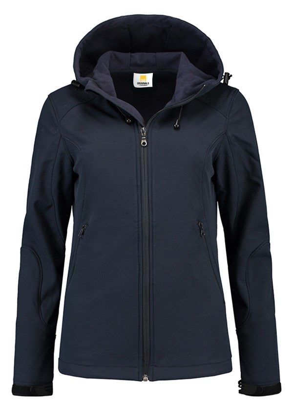 Lemon & Soda softshell jack voor dames met capuchon en twee zakken met rits van een hoogwaardige kwaliteit. Softshell is te borduren en hierdoor is het jack in te zetten als gepersonaliseerde promotiekleding of bedrijfskleding.