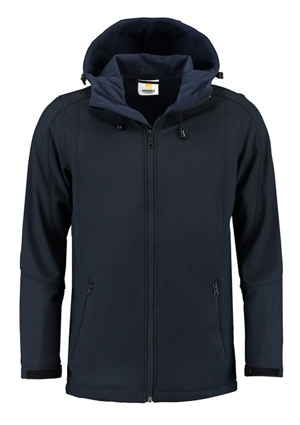 Lemon & Soda softshell unisex jack met capuchon en twee zakken met rits van een hoogwaardige kwaliteit. Softshell is te borduren en hierdoor is het jack in te zetten als gepersonaliseerde promotiekleding of bedrijfskleding.
