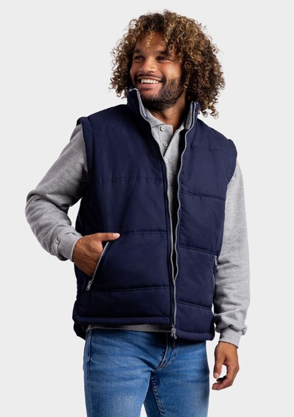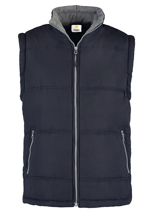 Lemon & Soda unisex bodywarmer met twee zakken af te sluiten met rits. Contrast kraag in een...meer