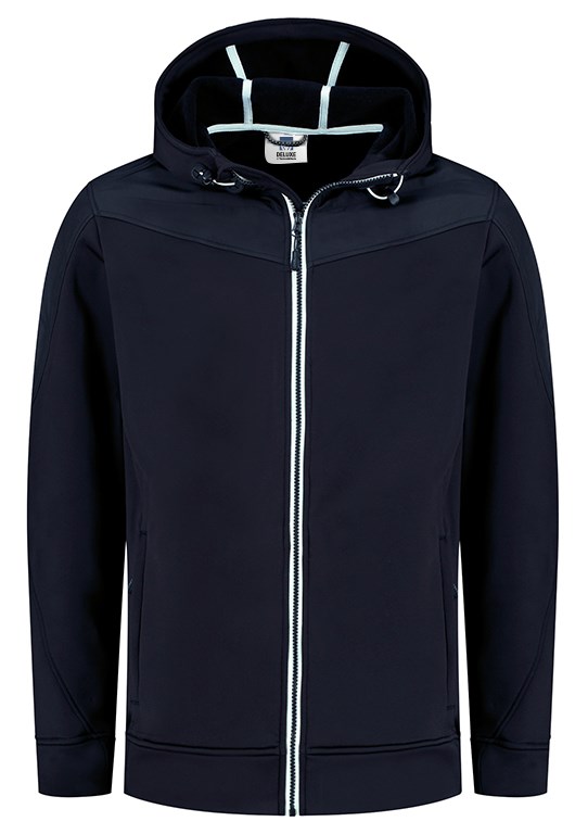 Lemon & Soda unisex jacket met capuchon en doorgestikte schouder en mouwstukken. Zakken met ritsen in de zijnaad. Contrast wit tape bij rits, binnenkant capuchon en contrast elastiek in de capuchon.