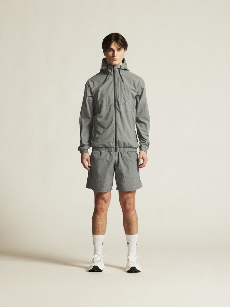 This contemporary windbreaker is made of a thin and lightweight woven fabric and features a functional mesh lining that provides excellent moisture transport for optimal comfort. Ergonomic design allows for a full range of motion, making it suitable for both exercise and everyday activities. In addition, the windbreaker features a hood with adjustable cord and two concealed zip pockets for secure storage of keys and other essentials.
