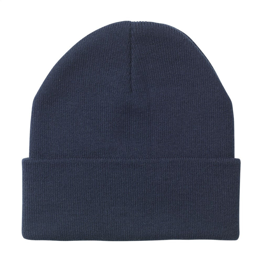 Gebreide muts met omslag. Van 100% RPET polyester. Populair, lekker warm en goede kwaliteit. One size. GRS-gecertificeerd. Totaal gerecycled materiaal: 100%.