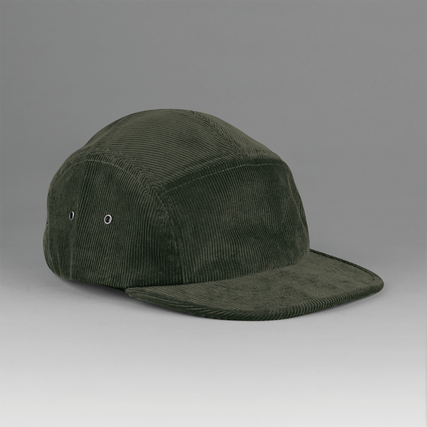 100% biokatoen. Corduroy. 5-panel design met platte top. Stoffen riem met gesp en oogje.