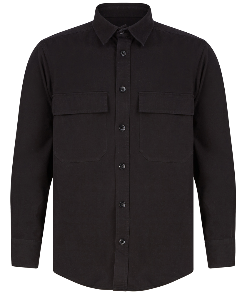 100% katoen. Overhemd met inzetsel op de achterkant. Dubbel stiksel. Opgezette zakken met klep op...meer