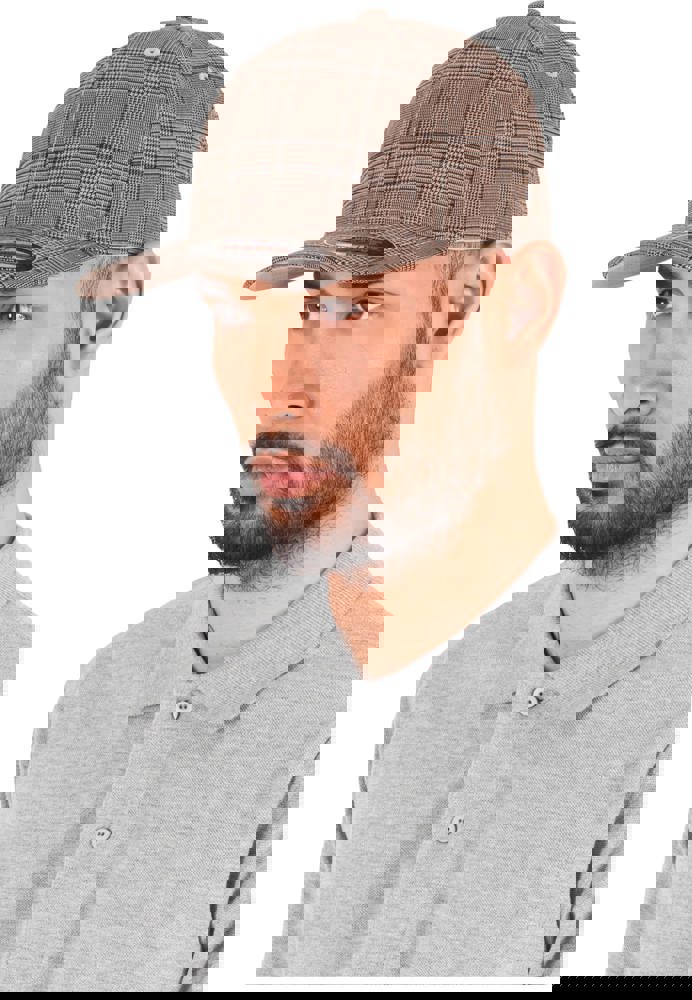 97% polyester / 3% elasthaan. 6-panel pet met Prince of Wales patroon en gebogen klep, voor een moderne en verfijnde uitstraling. De pet is voorzien van een rekbare hoofdband, wat zorgt voor een comfortabele en veilige pasvorm voor alle maten.