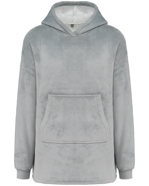 100% polyester. Oversized model met afhangende schouders. Dubbelzijdige stof, buitenzijde van ribfluweel en binnenzijde van sherpa. Vooraan gekruiste capuchon in twee panelen, afgewerkt met dubbel stiksel. Lange mouwen met een mouwuiteinde in 1x1 ribboord. In de ribboord aan de mouwuiteinden zit elasthan om vervorming te voorkomen. Kangoeroezak. De boord onderaan kreeg een dubbel stiksel. Geen merklabel, maar een maatlabel in de kraag voor eenvoudige personalisatie.
