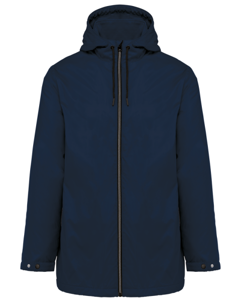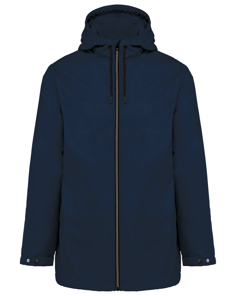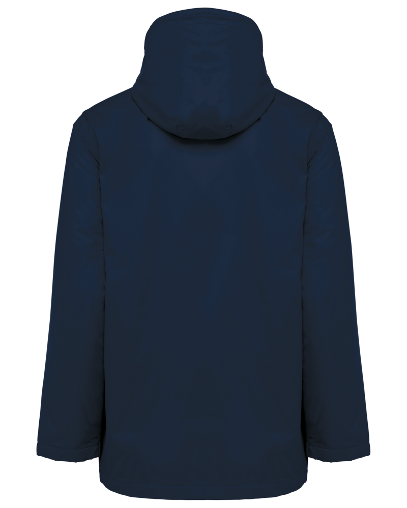 100% polyamide 210T met acrylcoating. Voering van 100% microfleece polyester. Rechte snit. Het lichaam, de kraag en de capuchon zijn gevoerd met toon op toon microfleece. Gewatteerde mouwen met polyester voering. Zwarte ritssluitingen met kettinkje van zilverkleurig nylon. 2 ritszakken aan de voorkant. 1 binnenzak met klittenbandsluiting. Gevoerde, driedelige capuchon met zwarte aanrijgkoordjes. Aan de mouwuiteinden zitten 2 drukknopen. Halvemaanvormige halsopening op de achterkant, voor eenvoudige personalisatie van het merk aan de binnenkant. Ophanglint in de kraag. Blinde drukkersrits op de borst links en onderaan het kledingstuk. Tear-away merklabel.