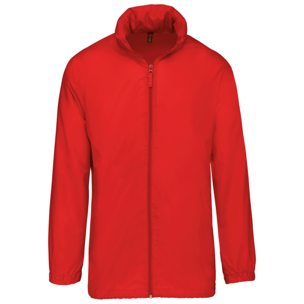 100% polyester. Capuchon in de kraag met klittenbands. 2 voorzakken met rits. Aanrijgkoord aan de onderkant. Elastische mouwuiteinden. Opvouwbaar in eigen binnenzak door middel van K-WAY® systeem. Toon op toon ritssluiting.