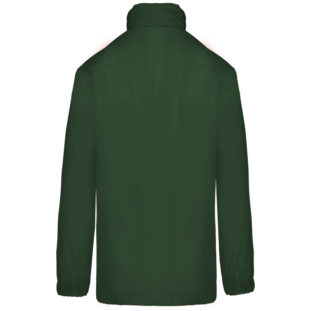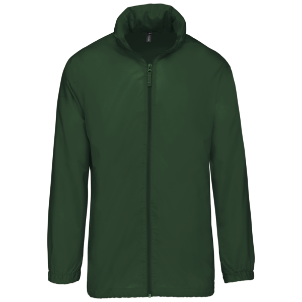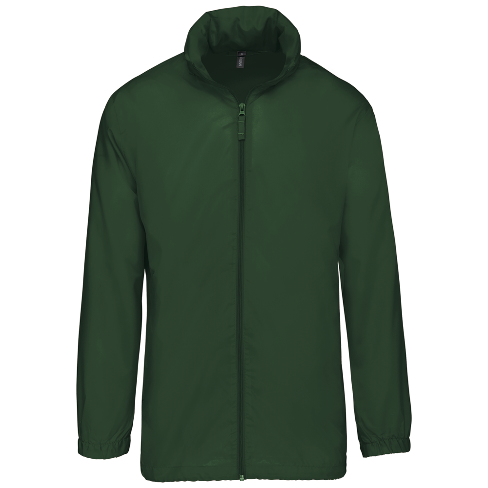100% polyester. Capuchon in de kraag met klittenbands. 2 voorzakken met rits. Aanrijgkoord aan de onderkant. Elastische mouwuiteinden. Opvouwbaar in eigen binnenzak door middel van K-WAY® systeem. Toon op toon ritssluiting.