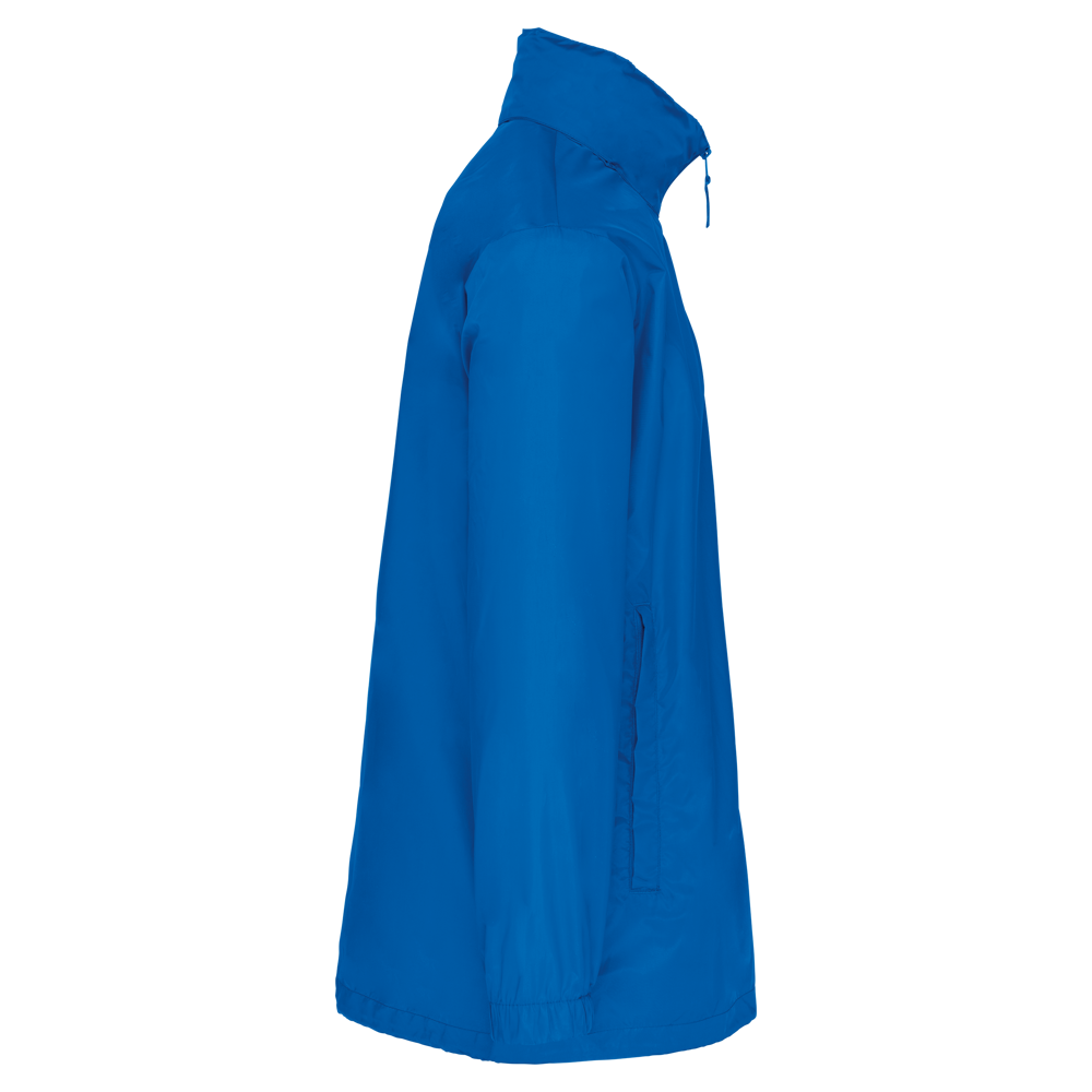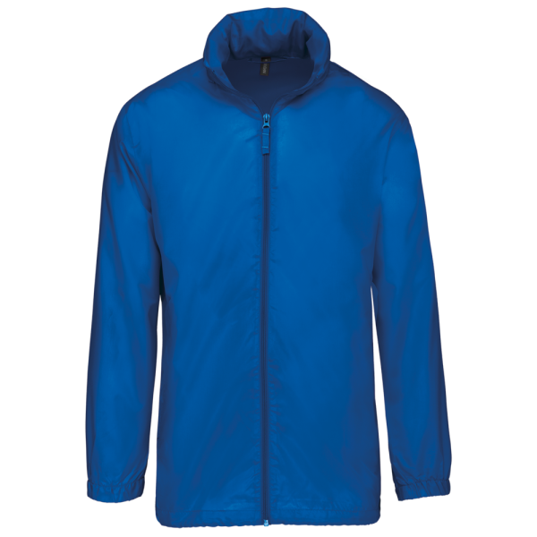 100% polyester. Capuchon in de kraag met klittenbands. 2 voorzakken met rits. Aanrijgkoord aan de onderkant. Elastische mouwuiteinden. Opvouwbaar in eigen binnenzak door middel van K-WAY® systeem. Toon op toon ritssluiting.