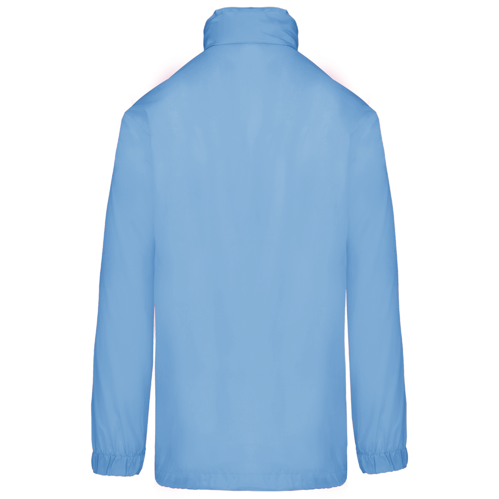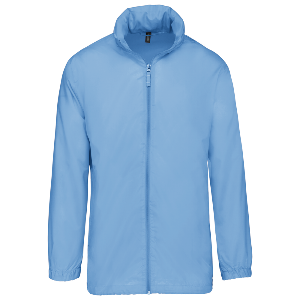 100% polyester. Capuchon in de kraag met klittenbands. 2 voorzakken met rits. Aanrijgkoord aan de onderkant. Elastische mouwuiteinden. Opvouwbaar in eigen binnenzak door middel van K-WAY® systeem. Toon op toon ritssluiting.