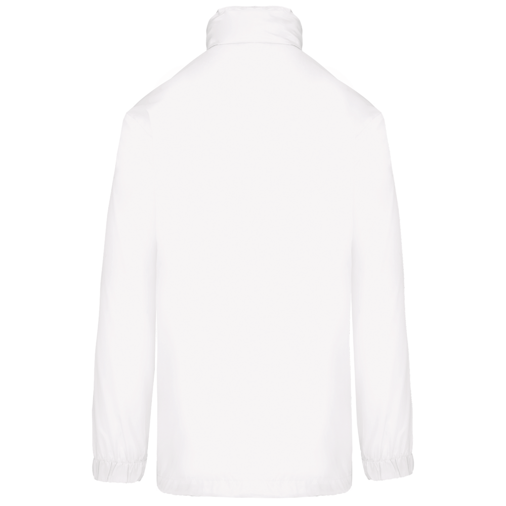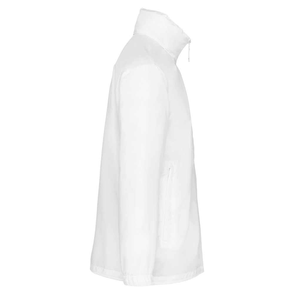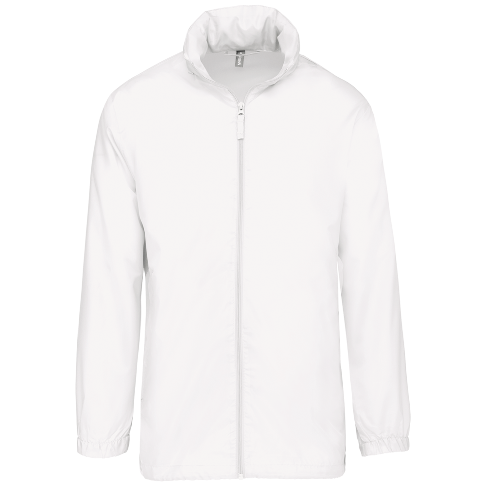 100% polyester. Capuchon in de kraag met klittenbands. 2 voorzakken met rits. Aanrijgkoord aan de onderkant. Elastische mouwuiteinden. Opvouwbaar in eigen binnenzak door middel van K-WAY® systeem. Toon op toon ritssluiting.