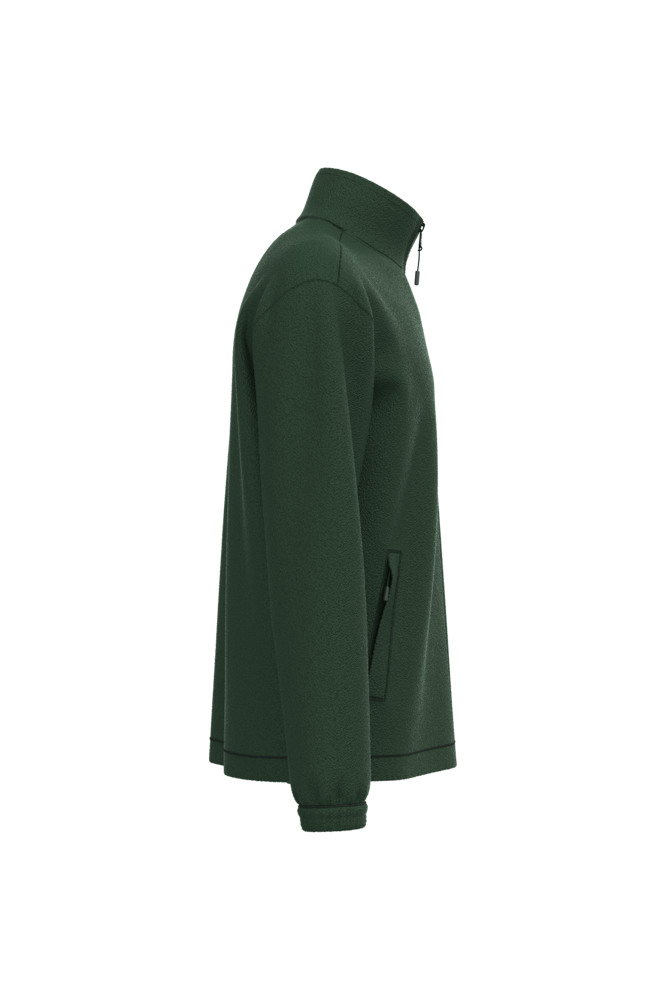 100% microfleece polyester met antipluisbehandeling. 2 omzoomde ritszakken opzij. Ritssluiting. Elastische mouwuiteinden. Boord verstelbaar met elastische aanrijgkoordjes (de elastiek zit aan de binnenkant vast om hem te verbergen).
