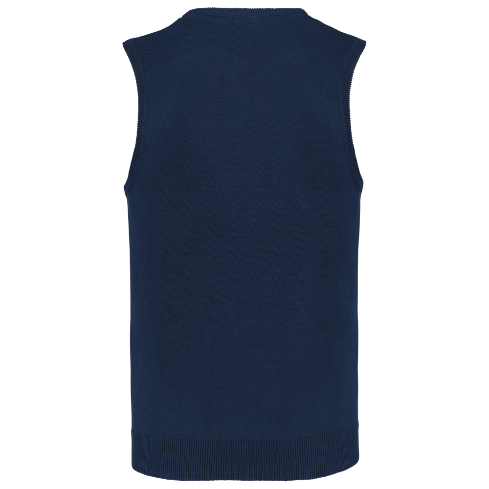 50% katoen / 50% acryl. Rechte snit. 2-laagse kraag en armsgaten in rib. Nektape.meer