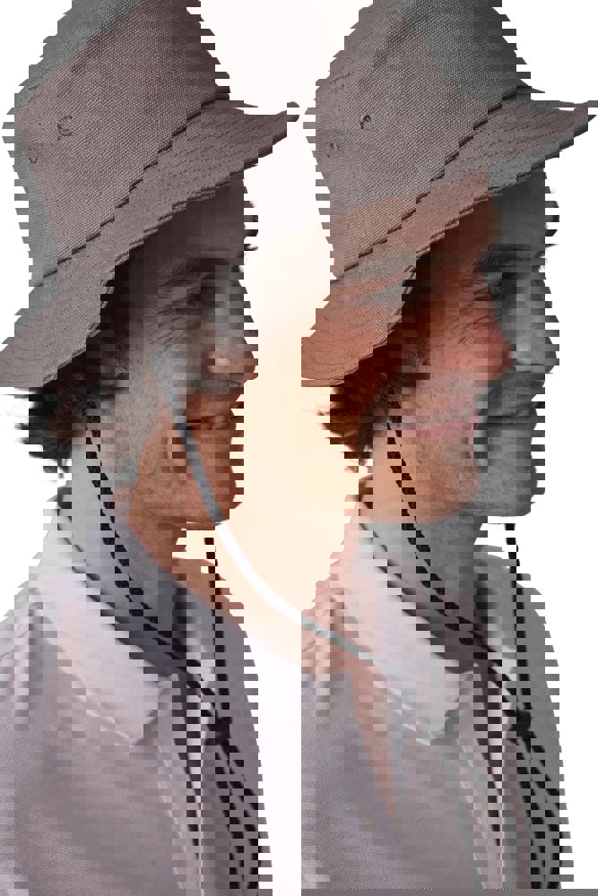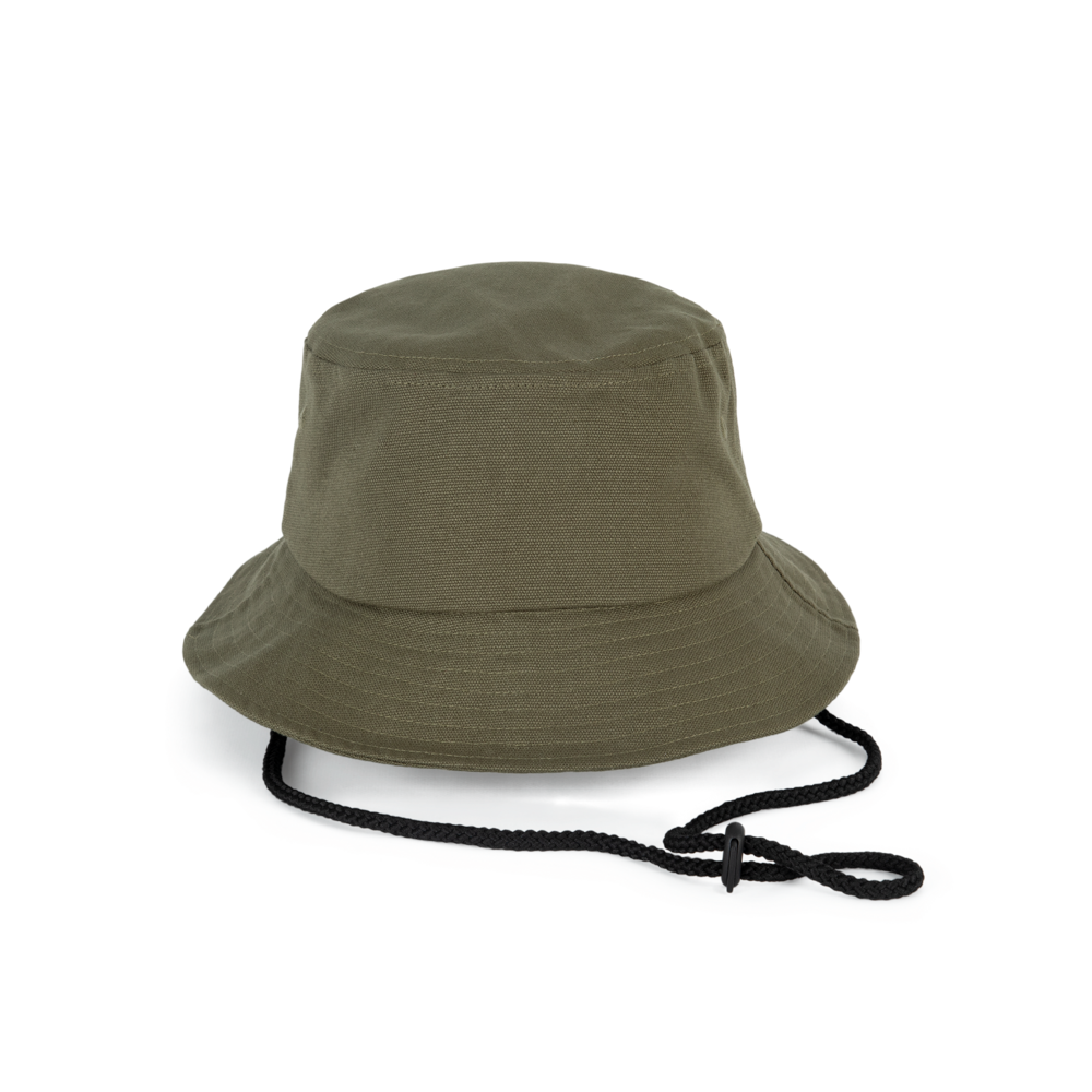 100% katoen. Katoenen bob in de stijl van een bucket hat. Veter met stopper. Tear-away merklabel.