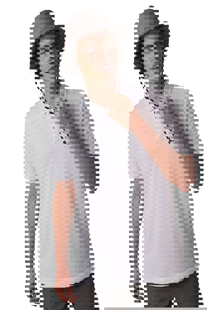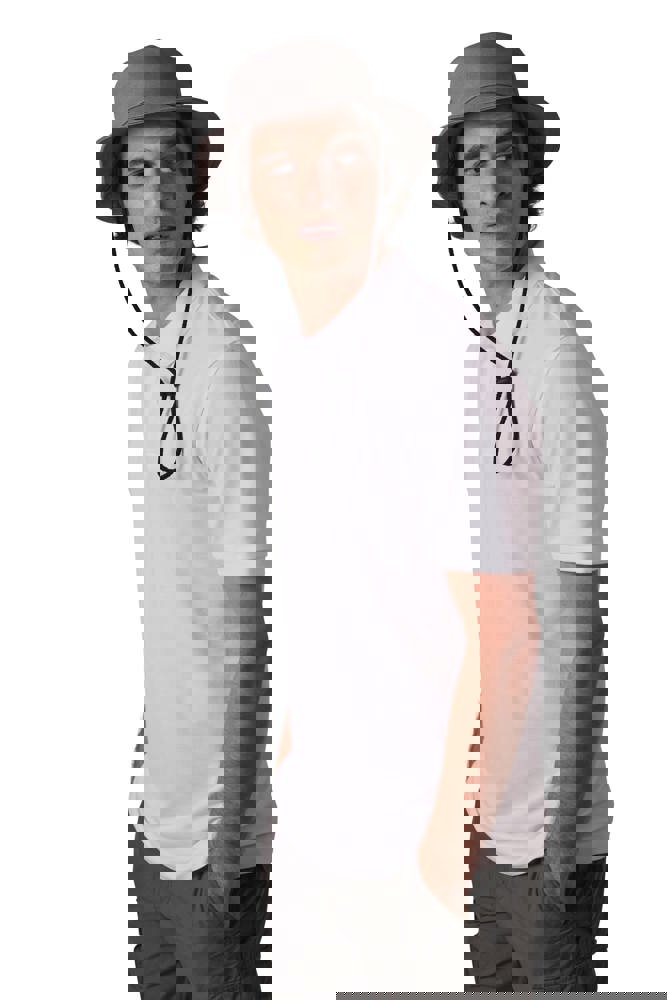 100% katoen. Katoenen bob in de stijl van een bucket hat. Veter met stopper. Tear-away merklabel.meer