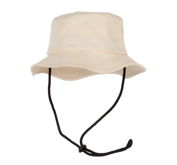 100% katoen. Katoenen bob in de stijl van een bucket hat. Veter met stopper. Tear-away merklabel.