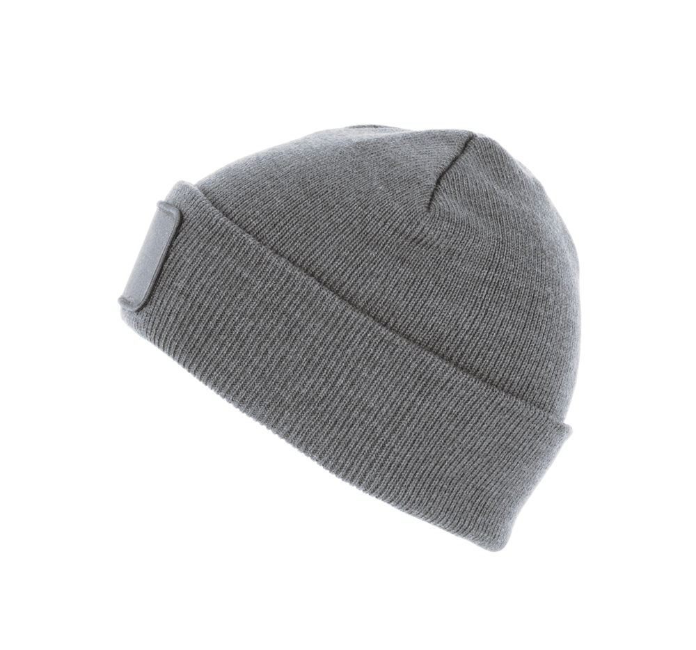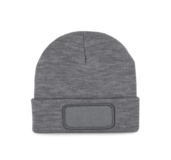 50% gerecycled polyester, 50% acryl. Muts met gebreide omslag in acryl en polyester. Katoenen patch aan de voorkant, voor eenvoudige personalisatie. Tear-away merklabel.
