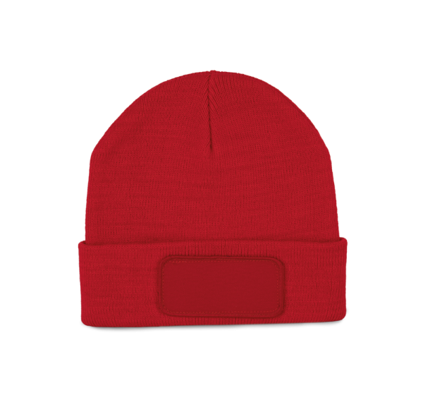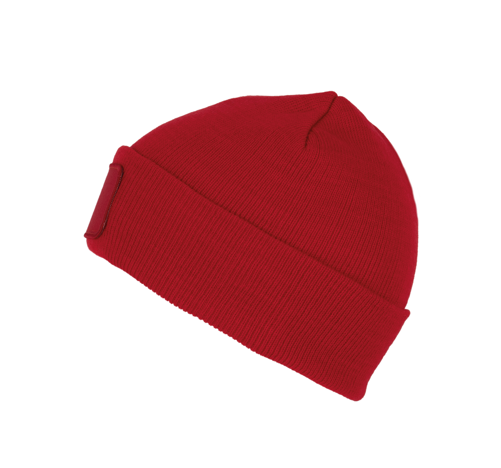 50% gerecycled polyester, 50% acryl. Muts met gebreide omslag in acryl en polyester. Katoenen patch aan de voorkant, voor eenvoudige personalisatie. Tear-away merklabel.