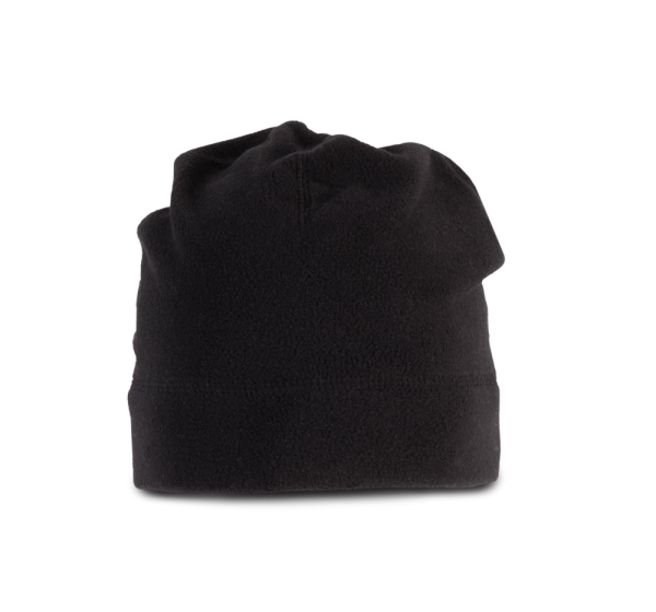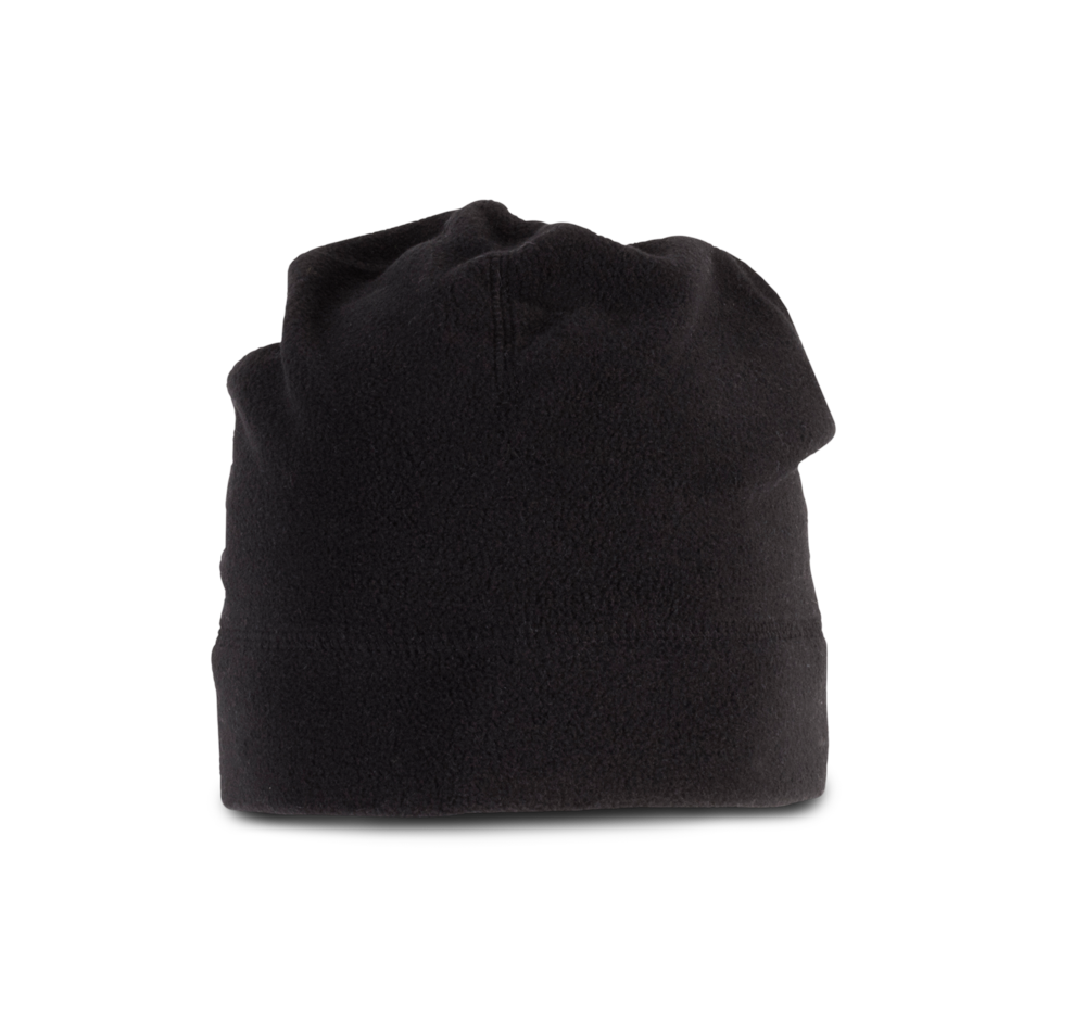 100% gerecycleerd polyester. Muts in microfleece, Tear-away merklabel.meer