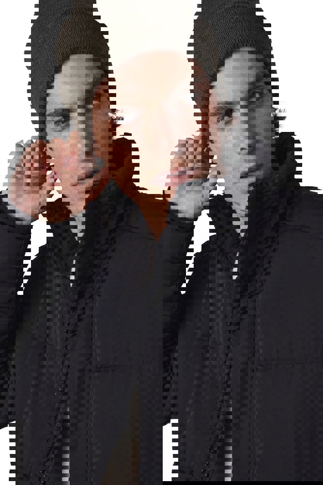 40% gerecycleerd polyester / 20% polyester / 40% acryl. Gebreide muts met omslag. Hele comfortabele Thinsulate-fleecevoering.