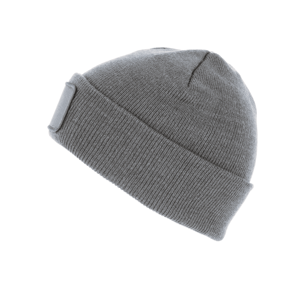 100% acryl. Gebreide muts met omslag in zacht acryl. Katoenen patch aan de voorkant, voor eenvoudige personalisatie. Tear-away merklabel.