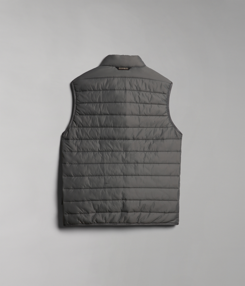 100% gerecycleerd polyamide. Volledig gewatteerd jasje met elastische boorden en een vulling zonder dons.