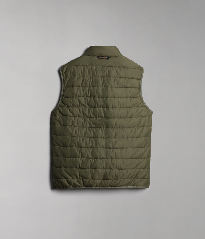 100% gerecycleerd polyamide. Volledig gewatteerd jasje met elastische boorden en een vulling zonder dons.