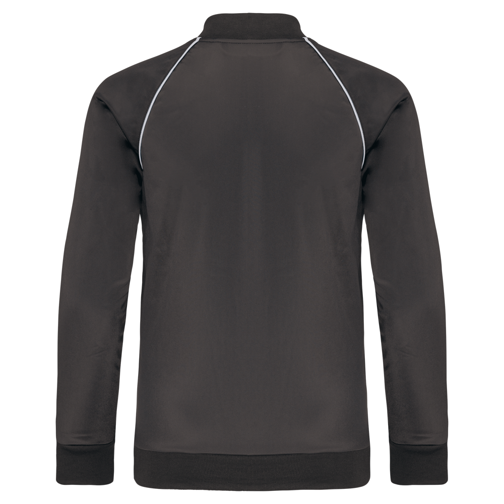 100% tricotpolyester. Rechte snit. Toon op toon ritssluiting in nylon. Raglanmouwen met contrasterend biesje. 1x1 ribboord aan kraag, mouwuiteinden en onderkant. 2 ritszakken aan de zijkant. Afscheurbaar merklabel voor eenvoudige personalisatie.