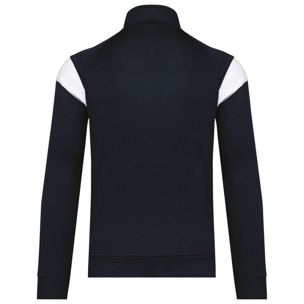 100% mat interlockpolyester. Rechte snit. Sluit vooraan met een omgekeerde ton-sur-ton nylonrits. Raglanmouwen met contrasterende inzetsels aan de schouder. Contrasterend inzetsel aan schouder en borst. Aangezette boord in de hoofdstof aan de mouwuiteinden en de onderkant. 2 ritszakken aan de voorkant. Inzetstukken in textuurstof opzij en achteraan. Ritsafdekking boven aan de kraag, voor meer comfort. Afneembaar merklabel voor eenvoudige personalisatie.