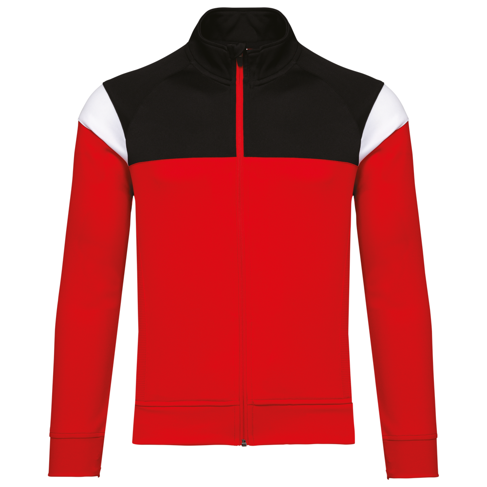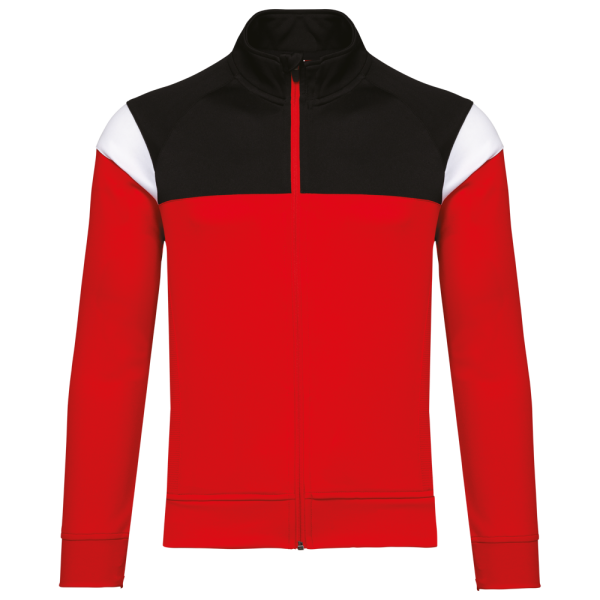100% mat interlockpolyester. Rechte snit. Sluit vooraan met een omgekeerde ton-sur-ton nylonrits. Raglanmouwen met contrasterende inzetsels aan de schouder. Contrasterend inzetsel aan schouder en borst. Aangezette boord in de hoofdstof aan de mouwuiteinden en de onderkant. 2 ritszakken aan de voorkant. Inzetstukken in textuurstof opzij en achteraan. Ritsafdekking boven aan de kraag, voor meer comfort. Afneembaar merklabel voor eenvoudige personalisatie.