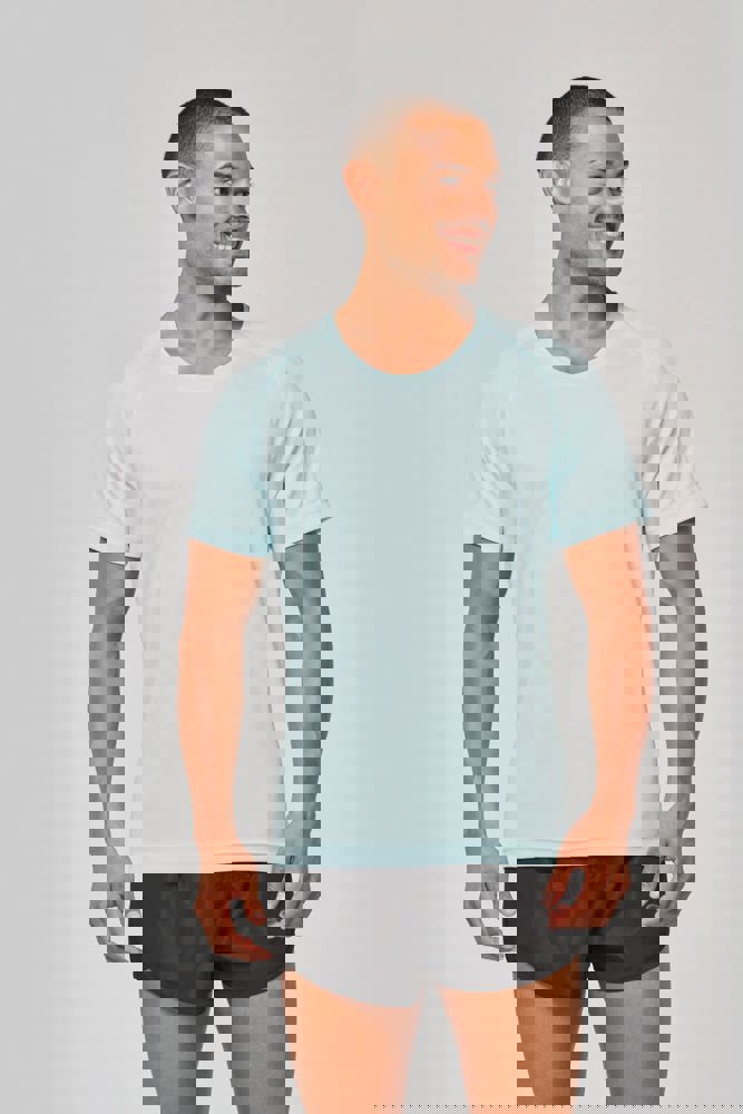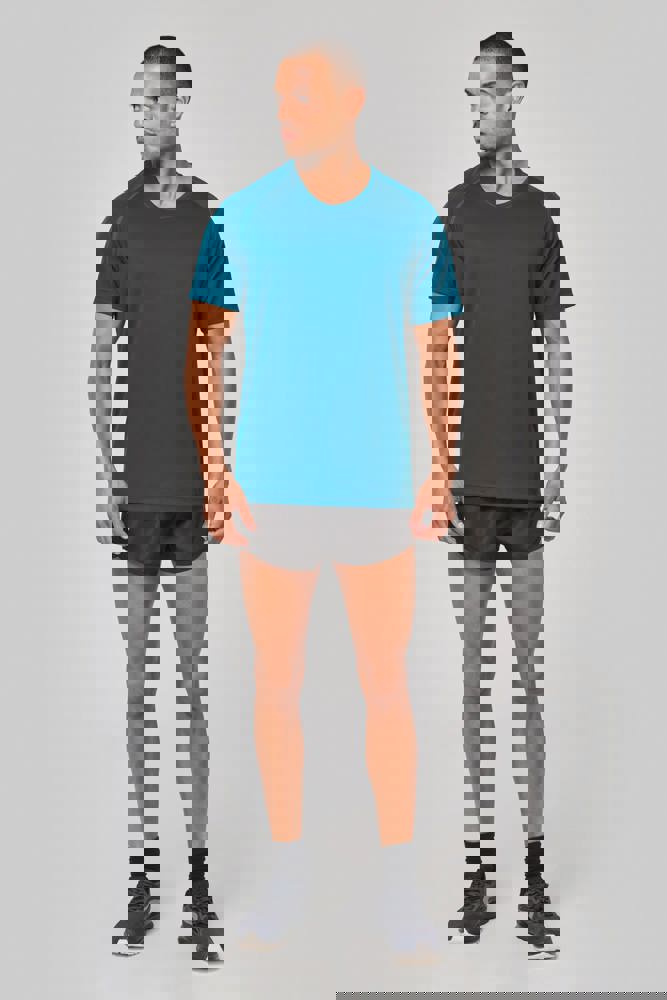 100% polyester. Gemaakt van 100% gerecycled polyester. Lichte en sneldrogende stof. Rechte snit. Ronde halsopening met contrasterende nektape aan de binnenkant. Raglanmouwen met toon op toon stiksels. Dubbel stiksel aan halsopening, mouwuiteinden en onderkant kledingstuk. Buisvormig aan de onderste zoom en aan het mouwuiteinden. Afscheurbaar merklabel voor eenvoudige personalisatie.