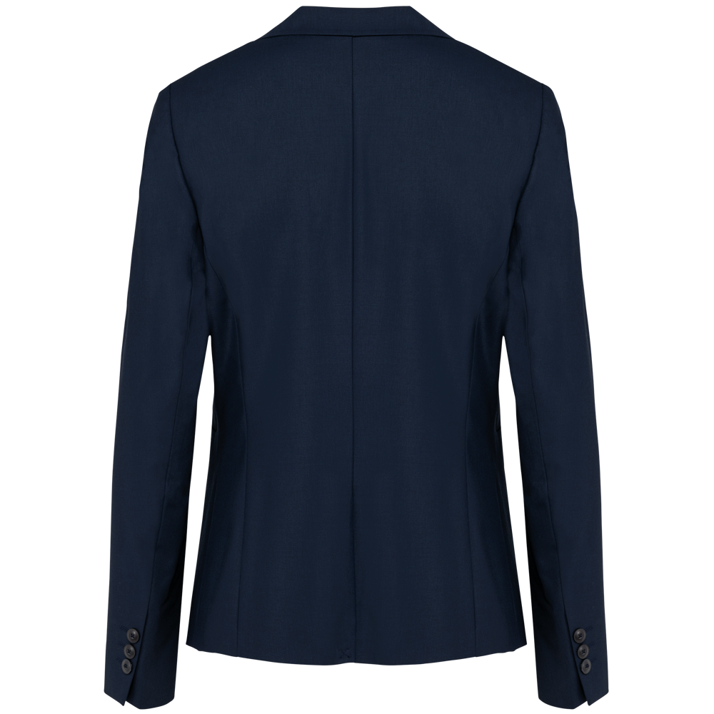 50% polyester / 23% viscose / 22% wol / 5% elasthan. Voering in 100% ton-sur-ton polyestertwill met ruimteplooien. Jasje met 1 knoop. 2 omzoomde zakken aan de voorkant. Een omzoomde zak aan de binnenkant op het hart. Mouwuiteinde met 3 knopen. 1 ruimtesplit onderaan de rug. Geen merklabel, maar enkel een maatlabel voor eenvoudige personalisatie.