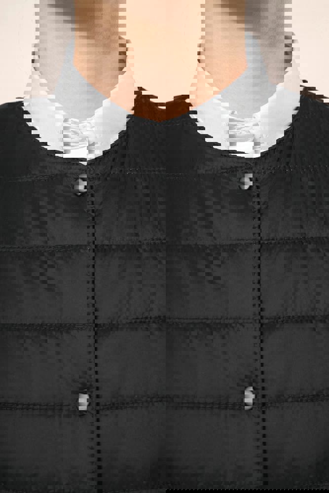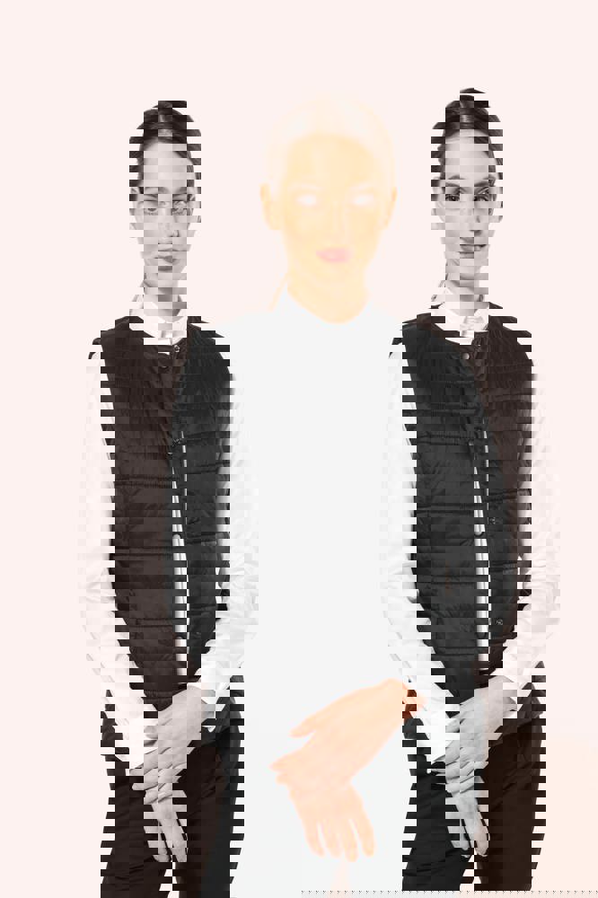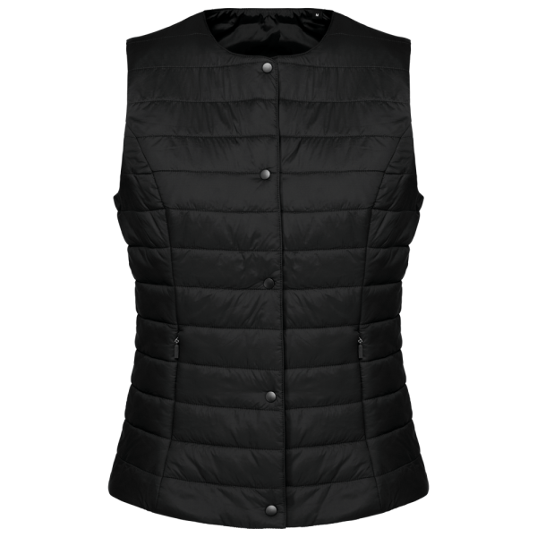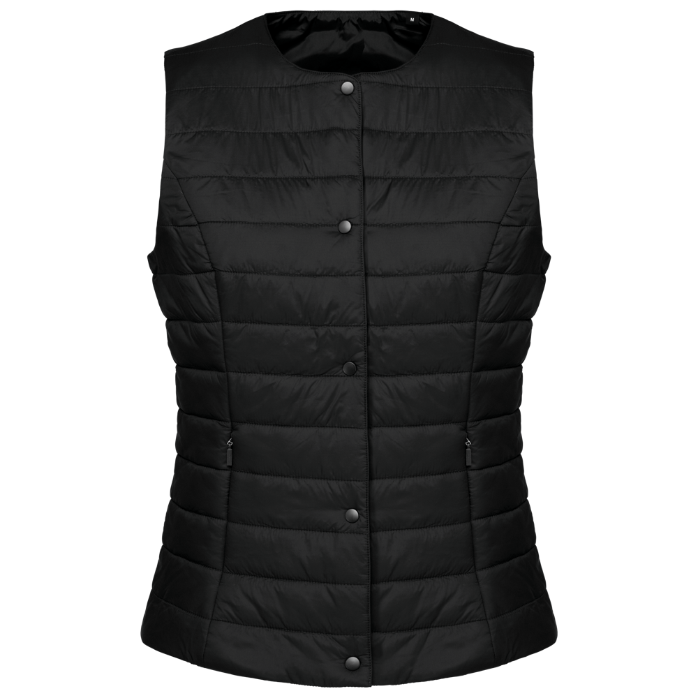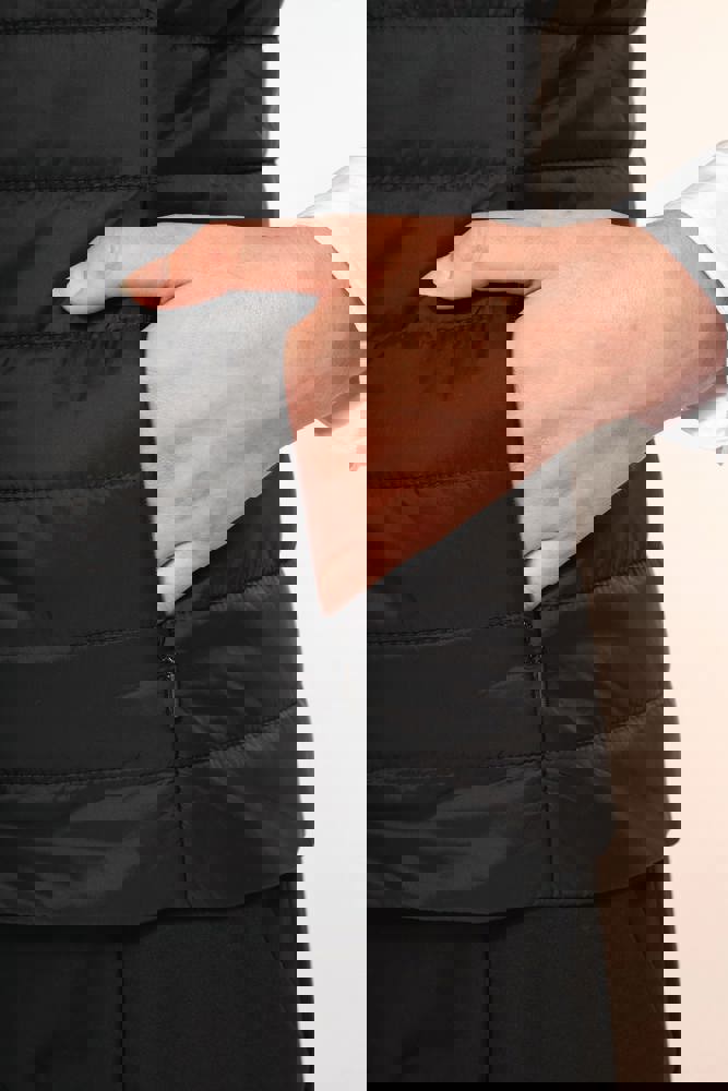 100% polyamide. Rechte snit. Gevuld met Thinsulate™. Inzetsel met 2 zijzakken en een verborgen rits. Sluit met ton-sur-ton drukknopen. Drukkersrits aan de binnenzijde links. Licht mouwloos gilet om het onder een jasje te kunnen dragen. Geen merklabel, maar enkel een maatlabel voor eenvoudige personalisatie.