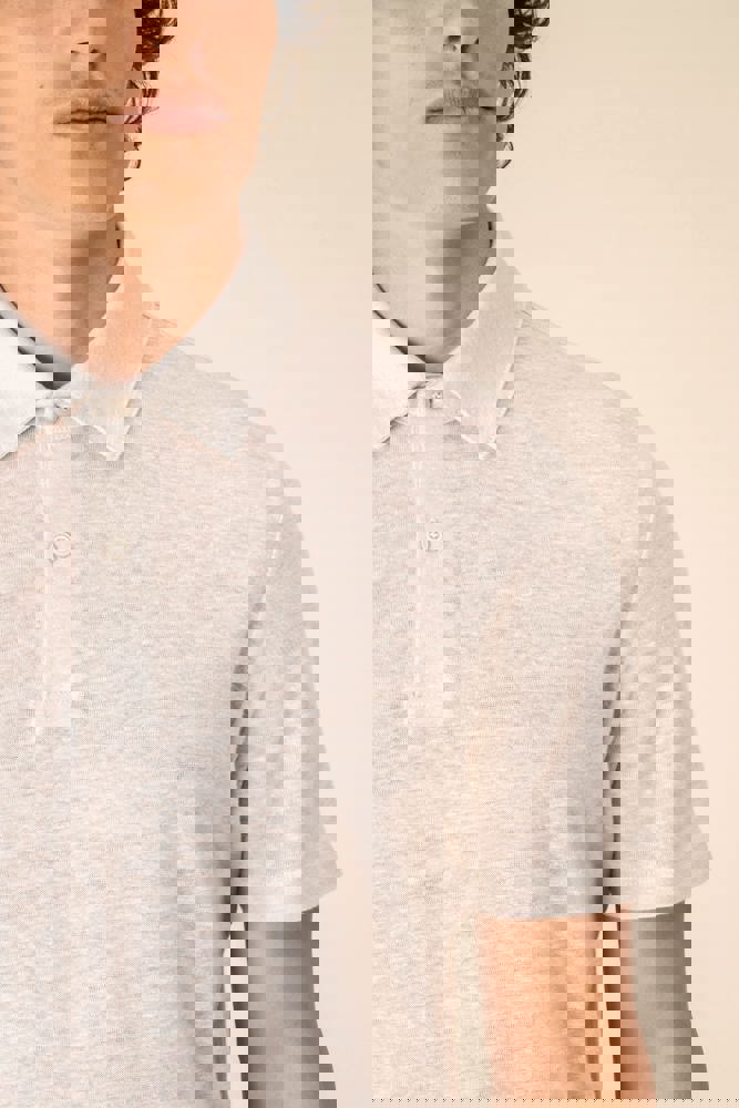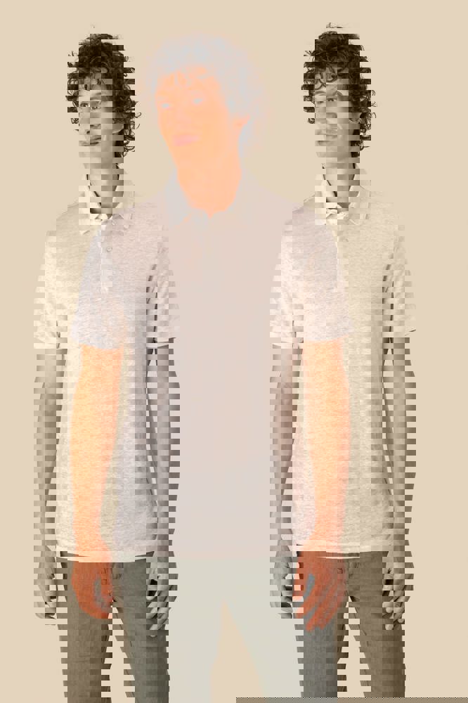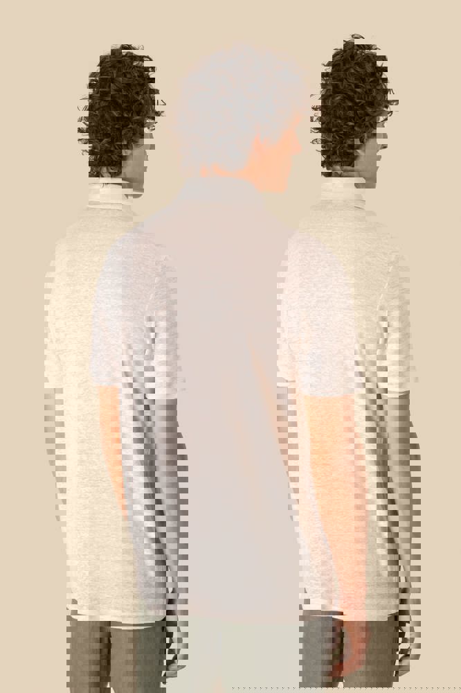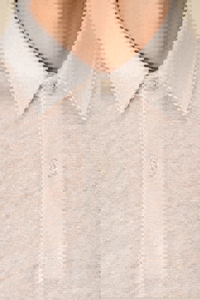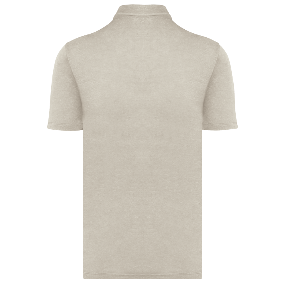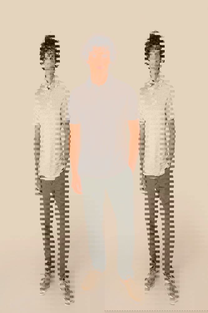 100% linnen. Tricot. Rechte snit. Kraag met staander in de hoofdstof. Knooplijst met twee knopen met stiksels van gerecycled plastic. Toon-op-toon knopen van gerecycled plastic. Afgewerkt met dubbel stiksel aan de mouwuiteinden en de zoom.