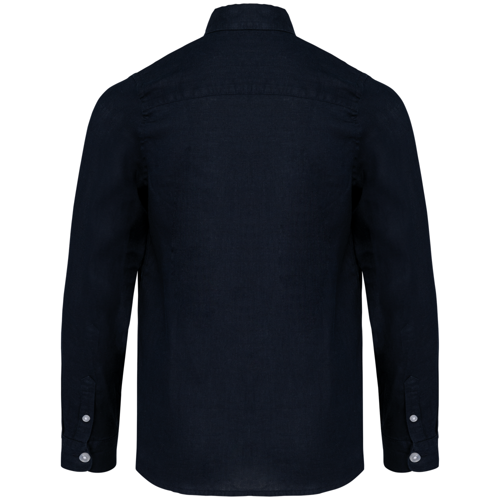 100% linnen. Geweven. Rechte snit. Zijnaden. Knooplijst met contrasterende parelmoeren knoopjes van gerecycleerd plastic. In de kraag zit een boord in visgraatmotief. Gevoerd inzetsel op de rug. Puntvormige lijst aan afgeronde mouwboorden met knoopjes. Zoom met enkel stiksel onderaan. Opgezette en Onderkant mouwen met dubbel stiksel. Kledingstuk gewassen na montage: kleuren kan enigszins variëren.