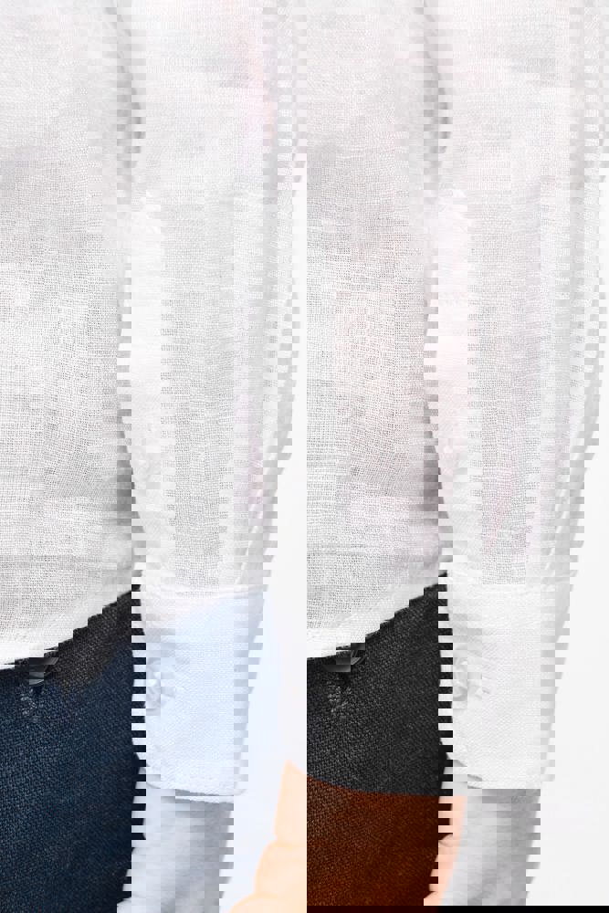 100% linnen. Geweven. Rechte snit. Zijnaden. Knooplijst met contrasterende parelmoeren knoopjes...meer