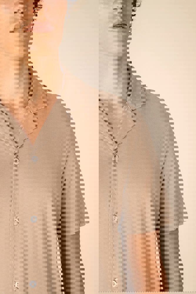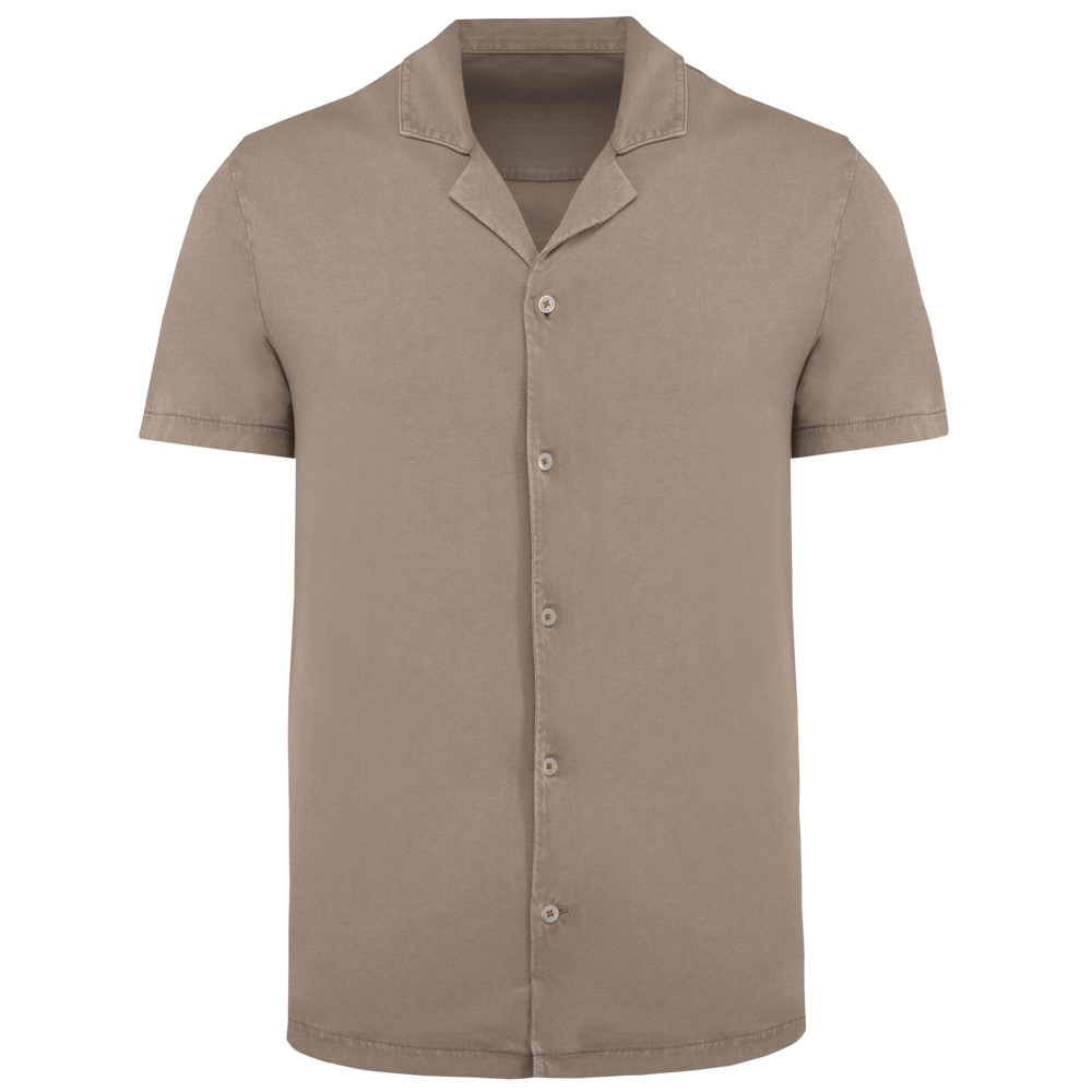 SP522 - Ecologisch verwassen herenoverhemd met korte mouwen en bowlingkraag in jersey